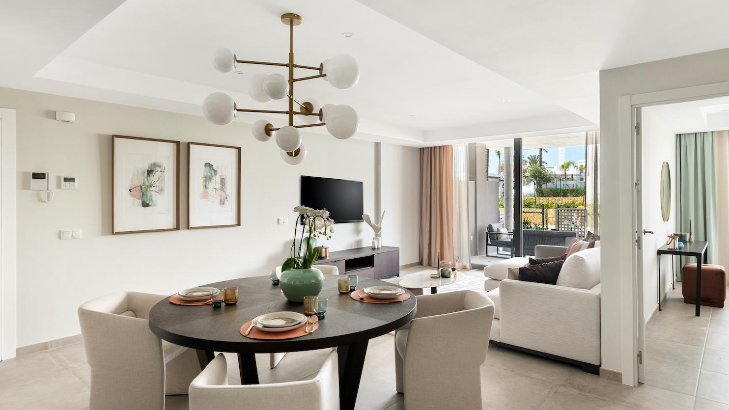 Elk appartement is functioneel ingericht met tot in de puntjes afgewerkte details in elke kamer. Er is een balans tussen privévertrekken, zoals de slaapkamers en badkamers en open sfeer, zoals de keuken, de woonkamer als de eetkamer om met het gezin of vrienden gezellig te vertoeven.