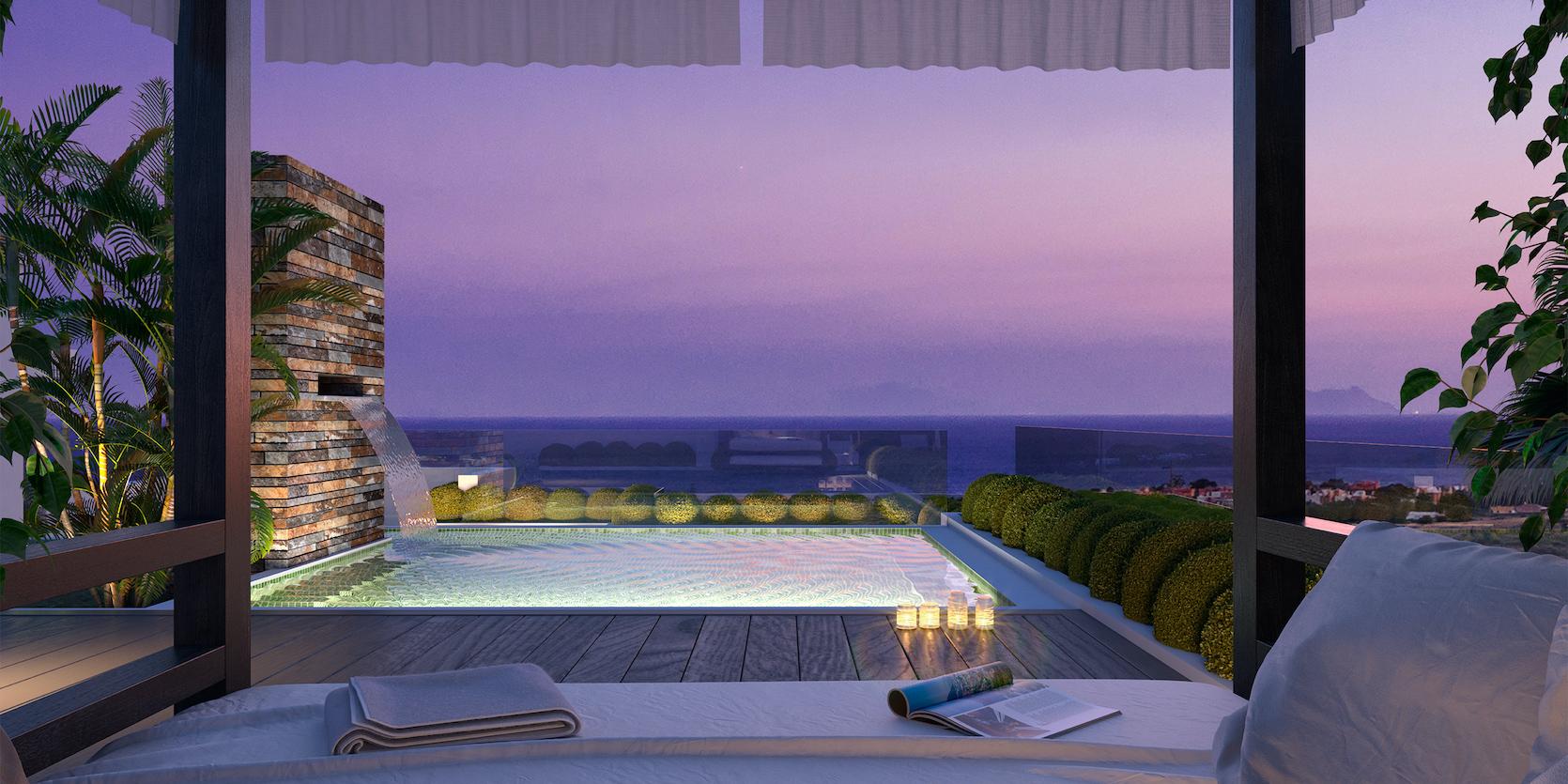 Nog niet overtuigd in welk paradijs u terecht zal komen? Dit dakterras zal uw verwachtingen overtreffen. Naast het adembenemende uitzicht kunt u genieten van de rust die het aanbiedt. Breng een toost uit op uw geluk terwijl u uitkijkt op de Mediterraanse zee of de La Conchaberg. Rust uit in de luxueuze Balineze bedden in de lounge mét zwembad.